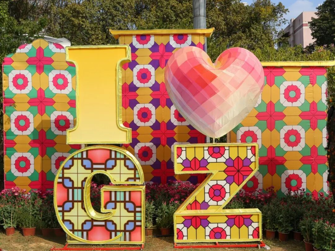 正门中轴线东侧的《福满新岁》景组,以斑斓景致承载多元新年愿景,满溢吉庆生机;西侧的《红棉暖春》则以市花木棉报春、金桔纳福,定格岭南初春的鲜活气息。
