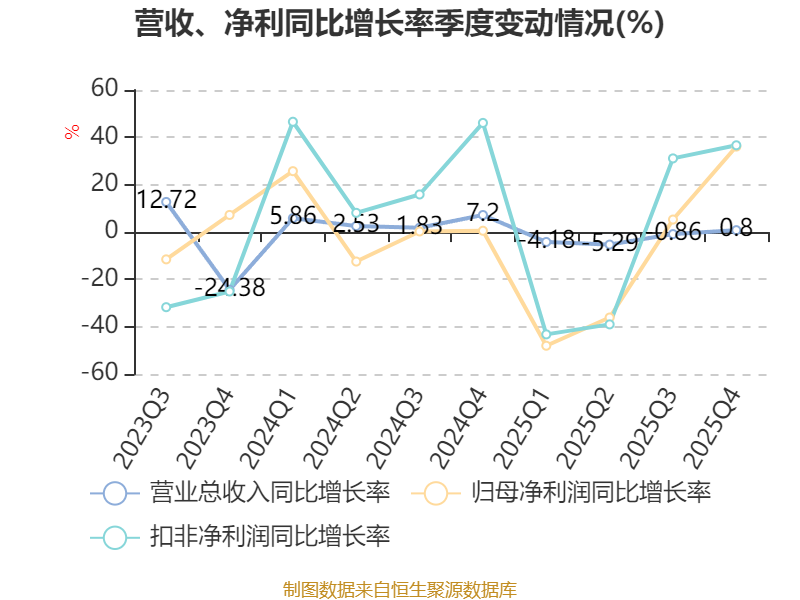年报显示,2025年末的公司十大流通股东中,新进股东为要鹏、董艳秋、王国锋、张建新,取代了三季度末的孟宇辰、李水清、王晓丽、明亮。在具体持股比例上,蒋根青、香港中央结算有限公司持股有所上升。