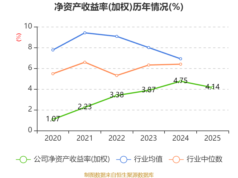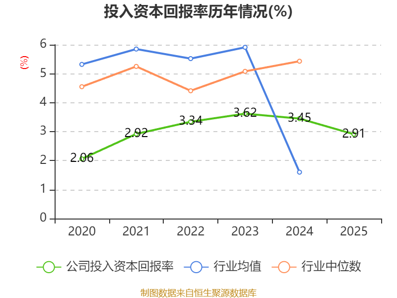 数据显示,2025年公司加权平均净资产收益率为4.14%,较上年同期下降0.61个百分点。公司2025年投入资本回报率为2.91%,较上年同期下降0.54个百分点。
