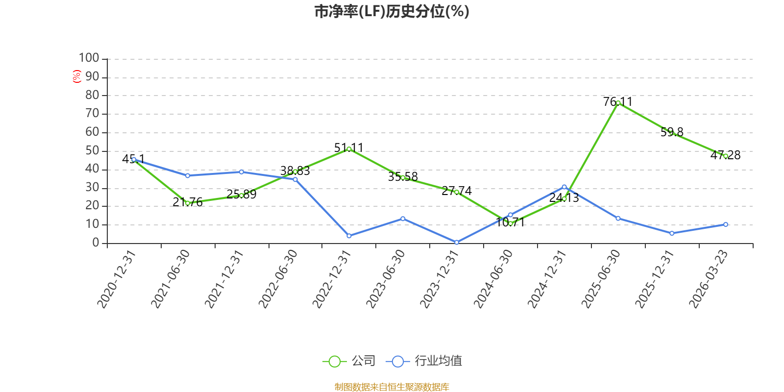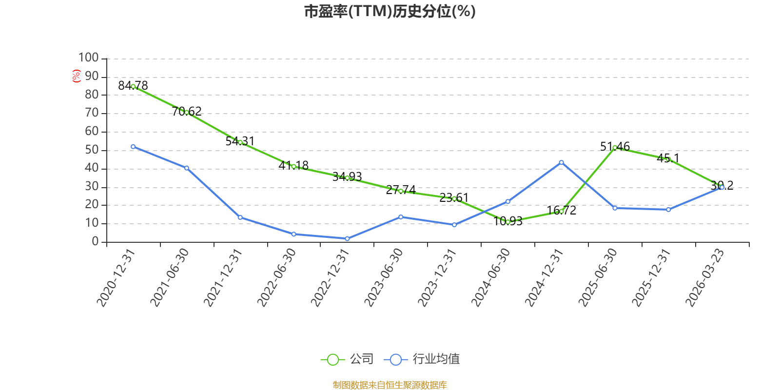 市盈率、市净率为负时,不显示当期分位数,会导致折线图中断。