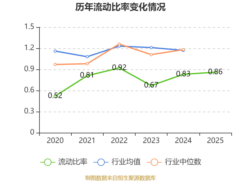 2025年,公司流动比率为0.86,速动比率为0.85。