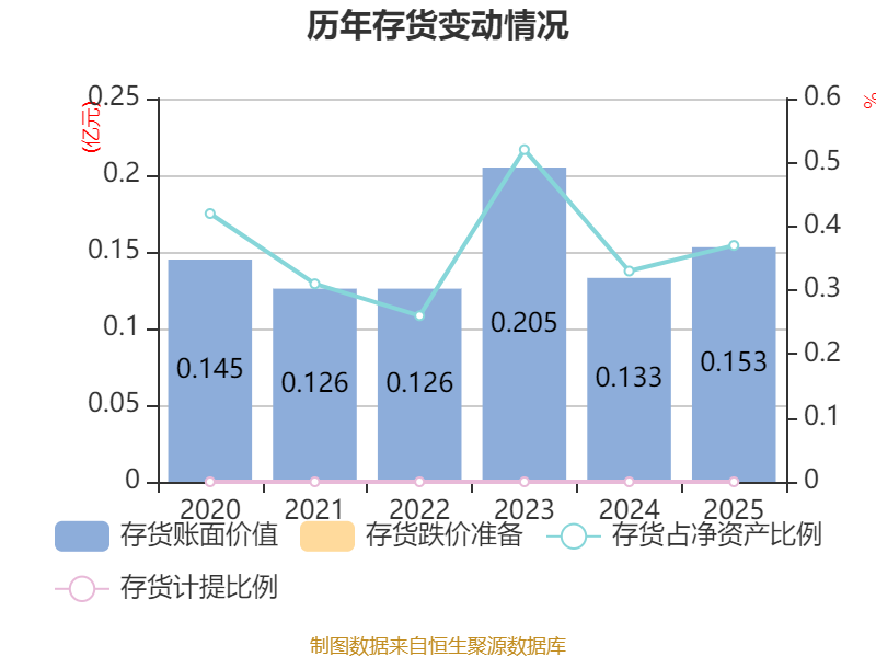 从存货变动来看,截至2025年末,公司存货账面价值为1531.54万元,占净资产的0.37%,较上年末增加201.81万元。公司本期没有计提存货跌价准备。