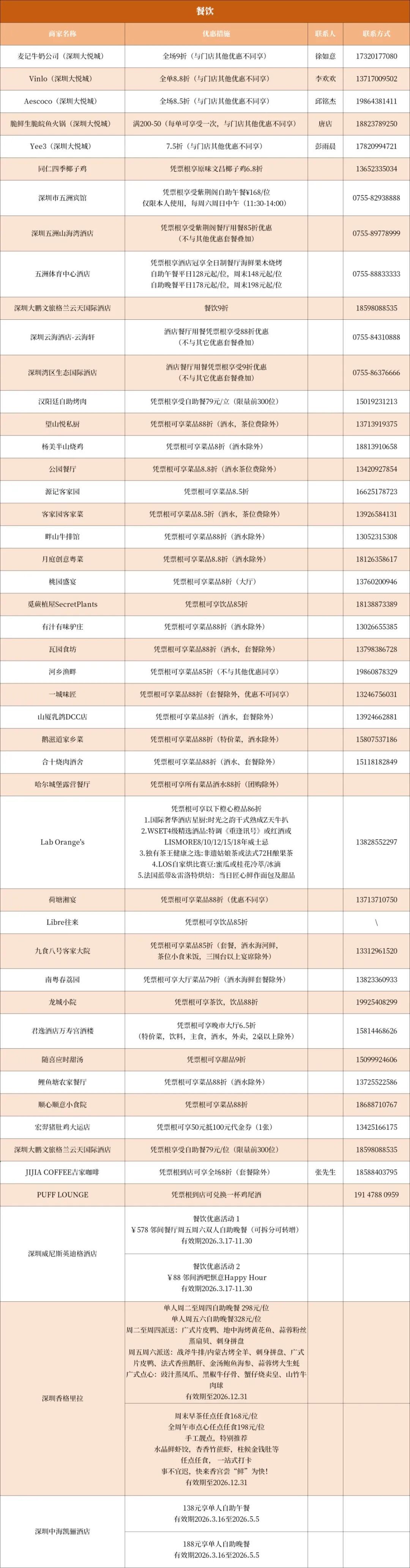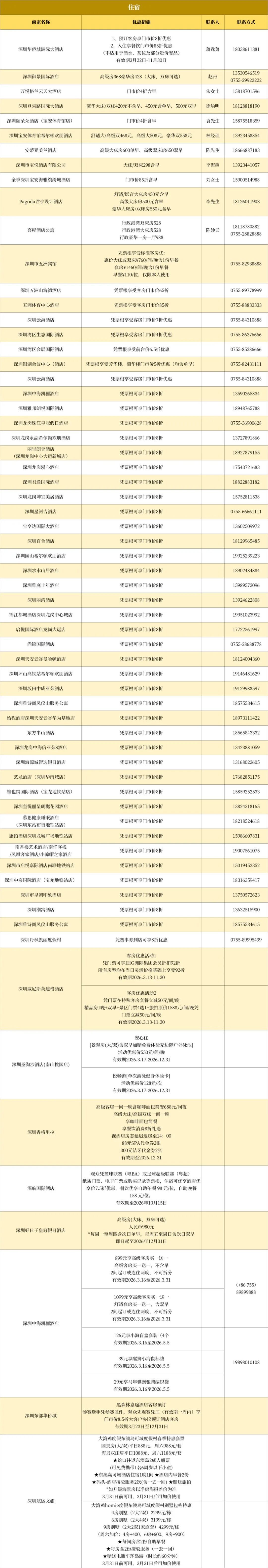 深圳中海凯骊酒店、深圳园山希尔顿欢朋酒店、深圳丽湾酒店等推出凭票根可享门市价8折活动。